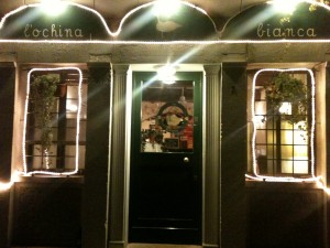 The car drew up before a hotel, lit up from top to bottom like a Christmas tree.
